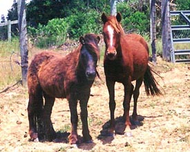 The first trip we have in mind is somewhere down the coast near, say, Cambria. And what a coincidence it just happens to be near the sanctuary where Homer and Angel are! The big news of the day is that Mrs. Pony gave birth (at last) to a healthy filly. As yet unnamed and tremendously cute, I used up a roll of film (plus another imaginary roll before discovering the camera wasn't loaded) on the two of them, finishing the roll off on the two boy ponies that Colleen is "desperately" seeking a foster placement for. I am considering it. The boys, Tony Pony and Peek-a-Boo, are half wild. I'm intrigued with the challenge of taming them enough that they can be caught, haltered, groomed, etc. I think I could make a big difference in the two months I could keep them. We'll see for now, back to cleaning house last next |