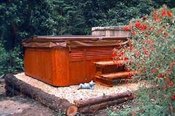 | Weddings and hot tubs. And lots of work to pay for it all! That describes life recently. Rodger's wedding was beautiful, and we were honored to spend the day before with them. Hopefully, amidst the stress of last minute preparations, we provided a small measure of assistance instead of adding to the pressure. Before we left for Marin, our new hot tub was installed! I have been known to complain about the lack of thunder and lightning in coastal California … not that day! The electrical storm of the century kept us from enjoying our first night in the tub. However, Westi & Michael put it to good use while we were gone. We couldn't bear to part with our old tub; it is being reincarnated into a cold plunge and mini-swimming pool. last next |