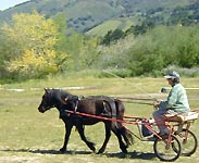 After 18 years as my constant companion, my beloved Tuxedo kitty died. Despite her failing kidneys we had more months with her than expected, thanks to Steve's devotion and her "only cat" status in the trailer. But she was fragile and it seems our time away in Texas upset her delicate balance too much; she stopped eating and we watched her decline until, on April 1st, she breathed her last. I will forever be grateful that I was able to stay home with her to the end. Less than a week later, our old Tyler dog became seriously ill. Our vet wasn't available and another vet told me it "was time to consider putting him to sleep". Now it was my turn to be fragile; I was not ready to hear those words. Especially from someone who, minutes before uttering them, had never met me or my dog! At my insistence he did blood work which, thankfully, showed that Tyler was severely hypothyroid. Within 2 days of treatment, Tyler was Tyler again! Whew... the day will come but I am thankful it's not here yet. As so often happens, death and sickness are balanced by birth. This time it was mama llama Allejulah, who bore the gift of baby Robin. And to neighbors Lisa and Mike... baby Ben, conceived the day of our renewal ceremony and arguably the most wanted baby ever born... a miracle of modern medicine and serious parental motivation! And then, a belated anniversary mini-vacation to the Blue Sky Lodge in Carmel Valley... a day and a half of hiking, ping-pong, relaxation, swimming, topped off by visiting our former foster pony Peek, in his wonderful new home where he has learned to pull a cart. Exactly what the doctor ordered! last next |