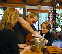 Wow. Wonder of wonders, miracle of miracles. Yes, Virginia, there is a Santa Claus! For years I've been lamenting the month of December and wishing we could just cancel it. Birthdays and holidays, enforced merriment and obligated gift-giving... I sounded much like my father's cynical annual Christmas letters. I thought we were in store for yet another nice-on-the-outside, flat-on-the-inside holiday season. Boy, was I wrong!! Thank you Nicole and Westi... sometimes it's wonderful to be wrong. Westi asked to have Christmas at home (ours, that is). To exchange stocking gifts and to spend the day making a gingerbread house. A return to old, beloved traditions, the best of our life together as a family. (Although we still started Christmas day with our tradition of recent years... packing Meals on Wheels alongside Michael's family.) And Nicole, well, she gave us the best present possible. Herself. We've seen Noli more in the last month than in the past two years. She gave me a birthday present and helped us move a shed; made chowder, baked bread and birthday cake with her dad for their birthday, helped decorate our house for Christmas (even brought a tree!) and shared Christmas with us. I'll say it again. Wow. last next